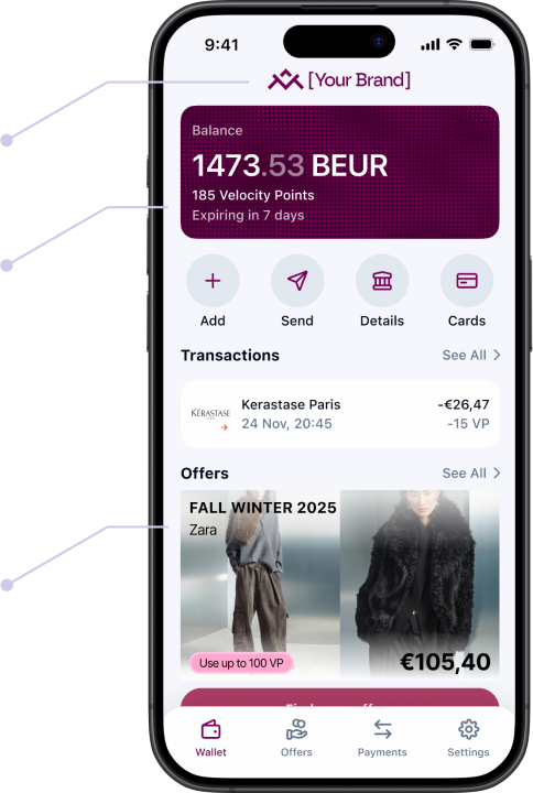 Provide named bank accounts with up to €150K of insurance per account, Issue branded cards to your audience, which provide meaningful cashb-back for reach transaction.